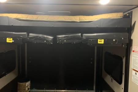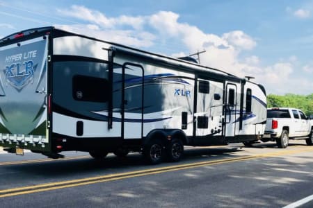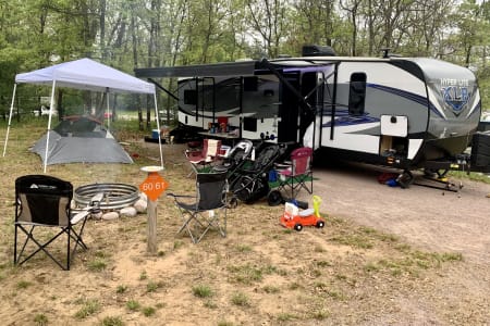 This is a beautiful practically brand new toy hauler. We use it couple times a year. I am ok if you bring pets in it but cage them while not in the camper with them. Great camper for nice family vacations or sport events. We have used it maybe 6 times since we bought it brand new. I am flexible on pick up and drop off times so just ask if different times are needed. Usually mon tues and Friday’s I can meet after 430pm for pick up and drop off and weds and Thursday's I can meet after 230pm. . Includes basic dishes and cook wear.
