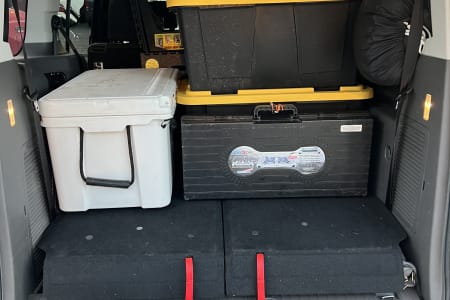 Meet Baby Beluga, a Ford Transit Connect camper van with a rooftop tent and awning for all your glamping adventures. The Transit Connect comfortably hauls and sleeps 5 people. Let the kids sleep in the 2+ roof top tent and enjoy the warmth of your partner as you stretch out on a nearly full size air bed and two person sleeping bag inside the van.