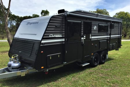 Full Offroad 21.5ft family 5 berth caravan. 3 water tanks, 2 solar panels, 2 batteries, diesel heater, 240v air con & a massive 188L fridge.