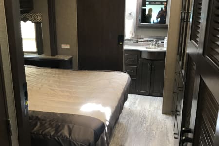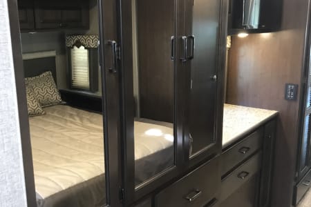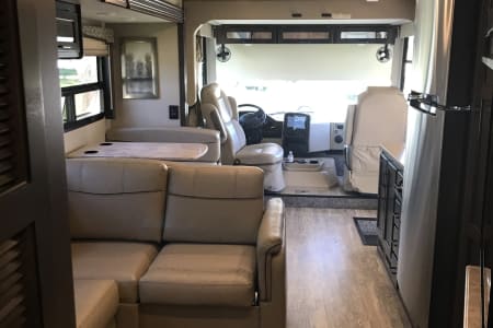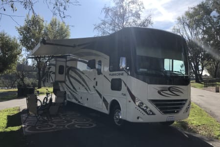 We loved renting and sharing new memories with families with our 2012 so we went out and replaced it with a 2020 Hurricane. Our RV features a king sized master bed, drop down queen sized bed, sofa, dinette, 1 1/2 baths, large refrigerator, Microwave and oven, two TV's inside, outdoor entertainment center, fully automated systems, lots of cabinets and storage. You name it, its pretty much has everything you need. Just bring your linens and towels and hit the road and make great family memories.