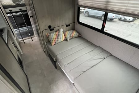 The dinette can be quickly turned into a bed (for 2 kids or 1 big adult ) and if you need double beds the rear storage can be used and we have a second mattress available.