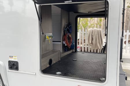Unique to this model is the massive rear under the bed storage which can fit up to six mountain bikes, lots of surfboards, snowboards or whatever your preferred toys are. Accessing this storage space is easy trough the big lateral doors and the electrical bed lift. We can add a 1up bike rack to bring even more bikes (or ebikes) outside and a vertical SUP/kayak carrier.