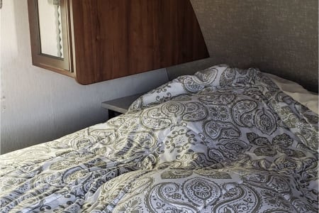It's a 2019 M-33 Sleeps 6-7 comfortable but list it sleeps 9. We have camped in 3 different States. Camper comes with Bedding, pillows, fully stocked with dishes, and some condiments, lawn Chairs, outdoor mat, extra drop cords, outdoor grill, plenty of extras. Will haul up to 200 miles any further requires prior permission. Pets permitted with a $50.00 non refundable fee.