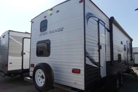 Thank you for your interest in our 27' (31.8' Hitch to Bumper) Openrange Bunkhouse Travel Trailer, we hope this will be a perfect fit for you and your family. The layout of this coach offers one of the most spacious interiors in its class; it comes equipped with a bunkhouse in the rear for the kids, a residential size queen bed located in the front, and a convertible dining room table which turns into a full, and a pull-out sofa. This is one of the best bunkhouse layouts available on the market with a slide-out; It can be towed with most half-ton Pick-Ups, SUVs, and Some Crossovers. Because of its length, it allows for easy towing and maneuverability, in addition, it meets most state and federal park length regulations, allowing you the freedom to camp wherever you want. Dry Weight 6320lbs, Gross is 8500lbs If self-towing your vehicle must be rated to tow a minimum of 7,320lbs.