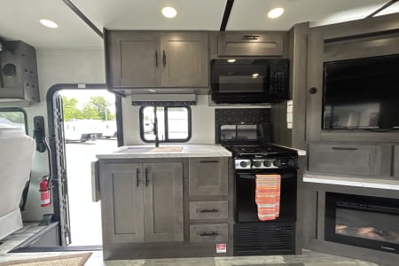 Love to cook? This RV includes a nice size kitchen with a good amount of counter place.