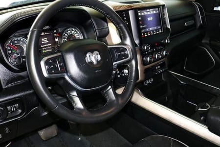 Meet our Black Beauty! Arrive towing your rig in Style & Luxury- 2020 Ram 1500 Hemi Quad Cab Luxury Tow Vehicle just made for Receiver Hitch Towing rated to 8310 GVW. This Diamond Black Crystal Pearl beauty pulls like a champ with a torquey 5.7L Hemi V8 powerhouse & 8 speed Torqueflite produces 365 hp @ 5500 RPM. You’ll fly over that Mountain Pass! Luxury abounds...with Leather Trimmed Bucket Seats, Sporty Console, Large Screen U-Connect Entertainment System. Accurate Navigation, Bluetooth-Sync your phone for streaming w/SiriusXM for your listening pleasure. Rides on OEM tires surrounding beautiful Chrome Alloys-nice & quiet. Heated/Cooled Power Adjustable Seats Fully Automatic Climate Control – set & you'll drive all day. Especially with the 28 Gallon Capacity Fuel Tank! Cruise more-stop less. Dark Privacy Glass Factory Tinting with chip free windshield. ; 4WD w/Traction Control… Road Trip Tow or Haul your stuff out in the Rocky Mountain West in comfort. Ram 1500 has a high safety rating, is surefooted- he just feels good on the road & safe when towing.