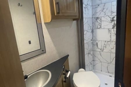 Enjoy the features of this rental such as a TV, refrigerator, stovetop, oven, microwave, and awning to relax under. This non-smoking, pet friendly recreational vehicle and has a 3-night minimum. Before we forget, this RV rental also has camp table, folding chair, bike rack, pet fee, and utility kit add-ons available, just to name a few. Interested in learning more? Scroll below for more add-on details, rules, insurance coverage, rates and floor plans.