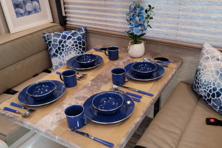 My wife and I have personally decorated it inside and have proudly named our RV "Blue Skies". Please take a look at the pictures to see this beautiful motorcoach.