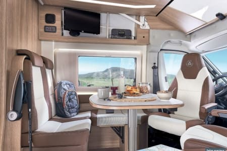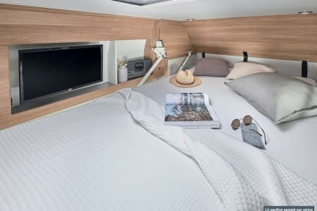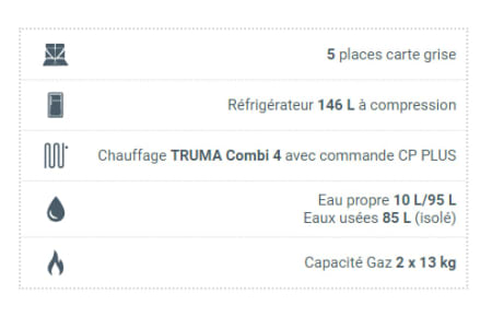 Très grande réserve d'eau, très nombreux rangements,batteries auxiliaires, aires, frigo américain : le Patagonia vous offre une très très grande autonomie...