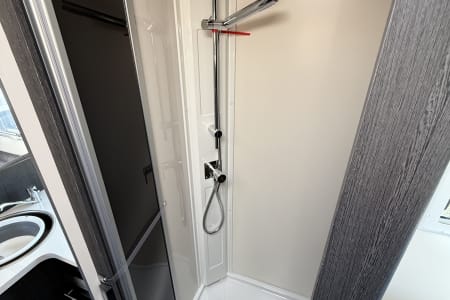 There is a full kitchen, including 3 burner gas hob, gas oven, sink and larger than average compressor fridge with freezer compartment. The bathroom comprises of a separate shower, and a separate toilet with electric flush and basin.