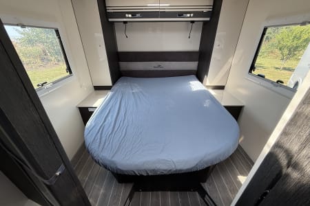 Fly screens and blackout blinds are available for all windows and habitation door.
