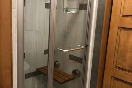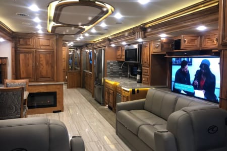 2020 American Coach Dream 42B Bath & 1/2 Bunk Model 44' total lengh rides on a custom-built Liberty by Freightliner chassis and is powered by a Cummins ISL turbocharged diesel engine with 450HP and 1250 ft. lbs. of torque. The 2019 Dream will turn miles into memories with its modern upgrades and extreme attention to detail. This luxury bath & 1/2 diesel motor home is approximately 43 feet in length and features a diesel Aqua Hot with rear ducted exhaust, independent front suspension, Select Drive steering assist, 15,000 lb. hitch receiver, Ultra Steer with V-Ride, 23K BTU Aurora dash climate control, Villa 6-way power driver and passenger seating with lumbar support and power footrests as well as heated tile flooring throughout. Options include a front overhead TV, theater seating sofa, technology package, Winegard in-motion satellite, roof mounted second awning, emergency exit door and 2 slide-out cargo trays. The 2020 American Coach Dream has a host of features including a full tile shower with teak bench, inverted three piece mirrors with integrated side cameras, 2800W Pure Sine Wave inverter, 10KW generator with power slide, lopro roof A/Cs with condensation lines, hydraulic and air leveling, contemporary ceiling plenum, large 4K TVs in the interior, Firefly multiplex system with Vega touchscreen, recessed cooktop with solid surface covers, fully enclosed roof ducting, security safe with keypad, residential refrigerator, articulating bed with deep overhead cabinets, RGB undercoach lighting, front stainless accents with backlit Dream logo, under slide-box LED lighting, Avionics entry door with air latches, bus-style fully enclosed entryway and so much more.