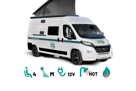 Pour partir jusqu'à 4 avec un fourgon compact et bien équipé, l'USHUAIA à toit relevable est celui qu'il vous faut ! Rangements, cuisine, frigo, salle de bain, chauffage, WC, auvent, moustiquaire, éclairage extérieur !