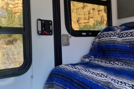 *Extension cord provided, but RV hook-up not required. Lithium battery comes fully charged and will last 5-7 days with normal summer use. Battery powers USB & 12V outlets ONLY. Shore power required to use 110V outlets.