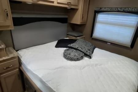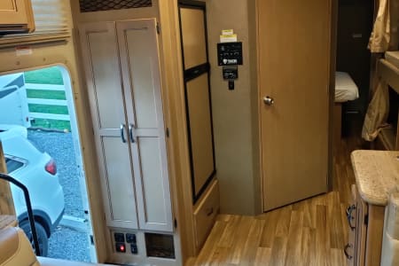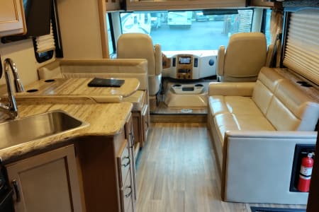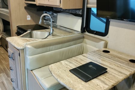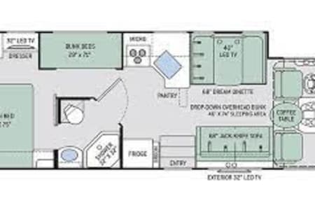This Thor Motor Coach A.C.E. class A motorhome features a full wall slide out for added interior space, sleeping up to 10 with a set of bunk beds, dual entry into the bath, and all that you need to enjoy traveling the countryside! Step inside and find a jack-knife sofa to the right of the entrance. Across from the sofa is a booth dinette for mealtime and more. There is a 40″ LED TV above the dinette that can easily be viewed from the sofa opposite. A convenient coffee table is between the driver and passenger seats for additional table space. There is a three burner range with microwave, oven, a single kitchen sink, and overhead storage along with a refrigerator found on the opposite side.Heading towards the rear of the coach there is a full bath with angled shower, toilet and sink. The bath features dual entry doors which allow easy access from the living area and from the rear bedroom too. Before the bedroom, you will find a set of 29″ x 71″ bunks on the right towards the middle of the full wall slide that the kids or grandkids are sure to love.The rear bedroom features a queen bed with nightstands and overhead cabinets. There is also a closet and dresser along the full wall slide. Above the dresser, there is a 32″ LED TV for your enjoyment. Back up front, you will find a drop-down overhead bunk for added sleeping space when needed, plus so much more! And outside there is a 32″ LED TV for watching your favorite shows and movies.