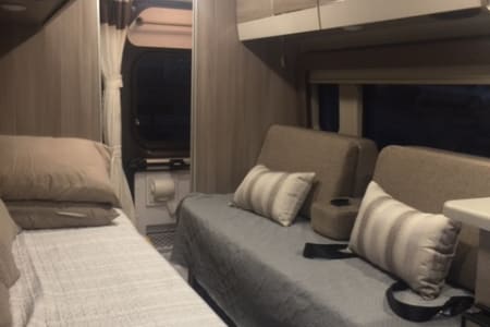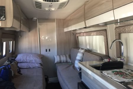 NO SMOKING INSIDE. Extra $300.00 charge to clean if returned with smoke odor. I bought this class B brand new and just used it to spend time on the beach or mountains. It has one TV and bluray player that can be turned on while driving and just by using solar and battery no need to turn on the Onan gasoline generator. This has the same sewer drainage as a class C and not the cassette type toilets other Class B have. Hence easy to empty black and gray tank. Propane tank will be filled up when picked up and no need to refill it back when returned, just refill it when tank gets empty and you still using it.