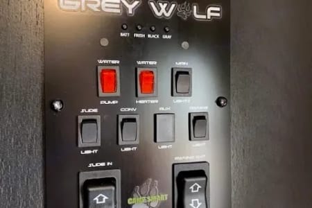 The kitchen is fully stocked with all necessary utensils, as well as basic cooking essentials like flour, sugar, seasoning salt, garlic salt, and onion powder. A Keurig coffee maker, with complimentary coffee pods, ensures your mornings start right. For your convenience, fleece blankets, sleeping bags, and pillows are provided for the bunks. The bathroom is equipped with fresh towels, washcloths, shampoo, body wash, and conditioner. The kitchen features a handy caddy with paper towels, plates, Solo cups, and plastic cutlery, so you won’t have to worry about washing dishes. Plus, a s’mores goodie caddy adds a touch of fun to your camping experience. Entertainment is covered with a 32" TV in the main room and a 24" TV in the master suite.