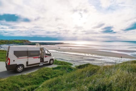 Vous bénéficierez d’un grand espace salon où vous pourrez vous installer confortablement à 4 personnes, grâce à la large banquette arrière et aux deux fauteuils cabine pivotant. Des ports USB et une prise 230V sont facilement accessibles pour vous permettre de recharger vos appareils électriques. La table, installée sur rails se glisse pour laisser plus de place d’un côté et de l’autre.