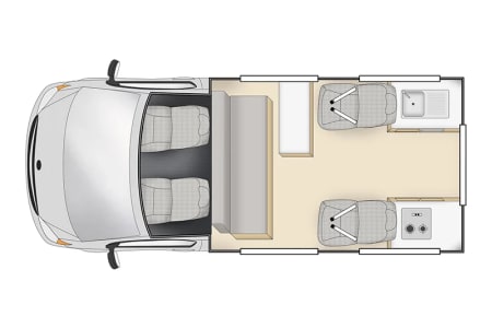 This van comes with all you need for cooking and eating, everything must be clean on return