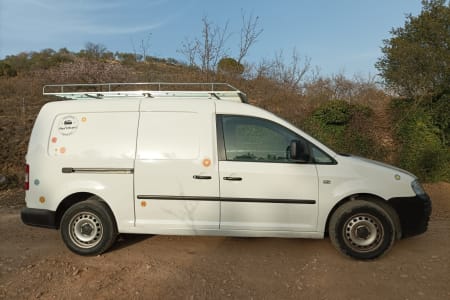 Alquiler de camper Volkswagen Caddy Maxi. Mali es nuestra furgoneta más original. Se trata de una Volkswagen Caddy Maxi diseñada para optimizar al máximo el espacio. Dispone de 2 plazas para viajar y tiene una conducción sencilla y económica ideal para aquellos que huyan de los grandes vehículos, pero no quieran dejar de disfrutar de todas las ventajas de viajar en camper.