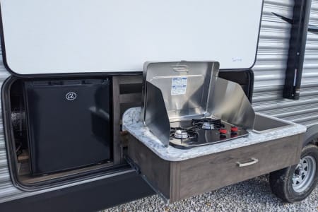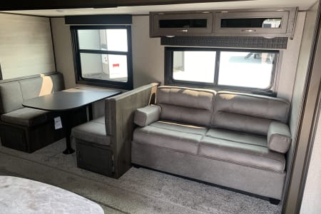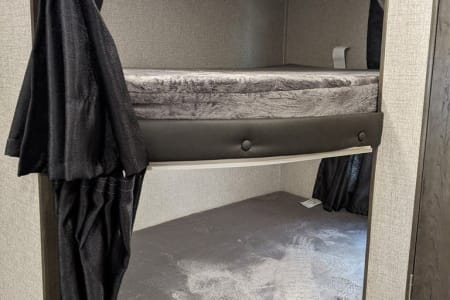 2021 Jayco 267bhs. highly desirable floorplan. Trailer only weighs 5800 pounds so easily towable with half ton truck or SUV. Front private queen bedroom and full size rear bunk beds. Couch and dinette also make into beds. Full kitchen and full bathroom. AC and heat furnace. TV with DVD player and Bluetooth stereo. Electric tongue jack and Electric 18 ft awning. Four Seasons trailer great for cold weather. Perfect trailer for large family with extra space. Generator and weight distribution hitch available.