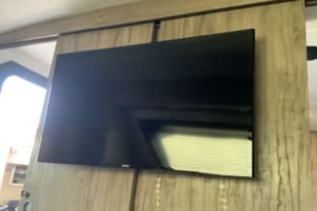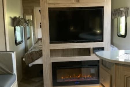 2021 Forest River Palomino Solaire Ultra Lite travel trailer with all new amenities. Trailer is 24 feet long and comes with a huge lighted awning, outdoor fridge and sink, outdoor shower, solar panels, and outdoor Polk audio speakers. Trailer can sleep up to 8 people comfortably with a king size private bedroom (with TV), full size double bunk beds, and a u-shaped dinette that converts to bed. Unit has a spacious bathroom, including a shower with lots of head room. Equipped with central ac and heat, electric fireplace/heater, large frig and freezer, oven, microwave, and lots of storage space. Unit comes with a Smart tv and stereo (with auxiliary plug/Bluetooth compatibility) and indoor Polk speakers. Other accessories available for an additional charge. See pics and accessory listing below. Delivery is available upon approval, for a fee.