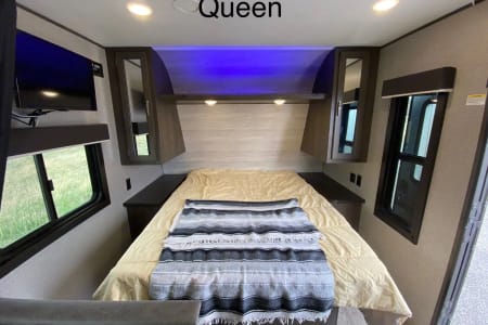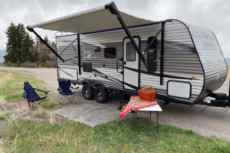 NON-Hookup Renters: There are two big new batteries on this camper that we aim to have fully charged for each renter. And those will keep the lights on and water pump going for several days. Exactly how long depends on how much electricity you use. NO microwave or air conditioner when non-hookup/off-grid camping though! The batteries aren’t strong enough. (You’d need a powerful gas generator, which would be an extra charge. Ask if you really need that option.) Propane can run the hot water heater to still have warm showers.