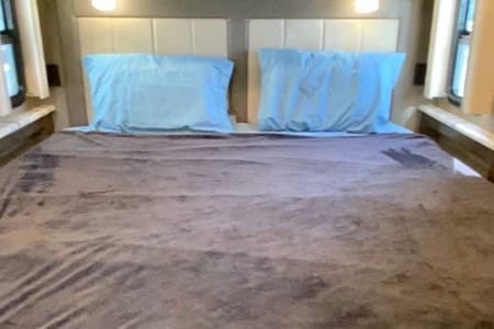 This 36Ft., class A, RV is super easy to drive with its cruise control settings. Sitting above the rest, on a Ford chassis, with a very large windshield for great visibility. 3 cameras for easy parking are displayed on the dash. Automatic electric leveling system that makes setting up a breeze. The interior is fully equipped with a conversion table bed, futon sofa, & an overhead bunk bed. As you enter the bedroom you will see an upgraded comfortable rear Queen-sized mattress with nightstands & overhead cabinets for plenty of closet and drawer storage. Equipped with a washer & dryer. Between the closets you have a 32” Led flat screen TV. The kitchen offers an all in one cooktop & oven, convection microwave, refrigerator/ freezer, overhead cabinets for dishes, a double sink, with a pull-out pantry and tons of storage inside and out.