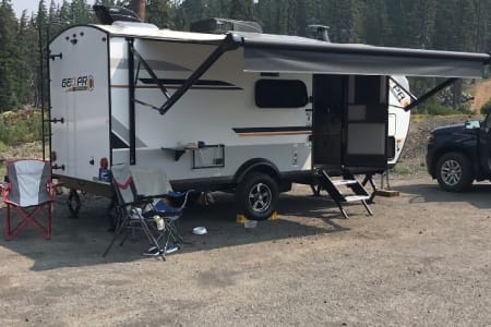 2021 Rockwood GeoPro ready for your adventures! This Geo is compact and lightweight but spacious and comfortable for a family of 5 and a dog or two! Amenities include: Recessed Cook top (no oven), 12V Refrigerator, convection microwave, flush toilet, indoor and outdoor shower, 12 Volt TV w/ DVD Player, Radio, Bluetooth and potential for Wifi capability, Gas/Electric Water Heater and wall-mounted outdoor gas grill, A/C, 20,000 BTU Furnace and roller shades for cross ventilating windows. Geo also has a 190 Watt Roof Mount Solar Panel w/ 1000 Watt Inverter for extended Boon Docking capability! 2 5/8 Anti-sway bar hitch available to use no extra charge!