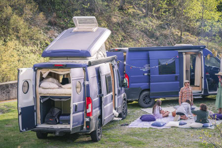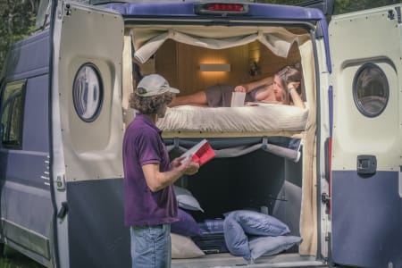 Conçu pour faire voyager jusqu’à 4 personnes, ce van est équipé d’une chambre au rez-de-chaussée et d’une seconde chambre avec toit dépliant (pour 2) pour rêver perché. Équipé par des experts du voyage nomade, il offre l’essentiel – et même beaucoup plus – pour partager des moments uniques : cuisine, salon connecté, salle de bain…
