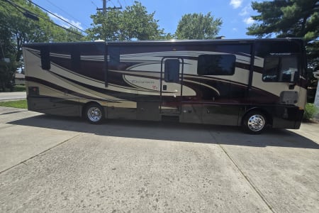 This luxury coach sleeps 8 comfortably. The RV has a total of 2 inside TV's, one outside TV, 2 bunk beds and Amazon Firesticks. New this year is a free unlimited mobile Hotspot, a tankless water heater for unlimited hot showers and Bluetooth and Wi-Fi climate control. Comfortable Sleep Number queen bed, a queen power loft bed with a Mattress that holds 650lbs, a 6kw auto start stop generator, washer/dryer combo, residential refrigerator, power steps, RV water filtration system, side and rear cameras and plenty of basement storage.