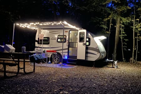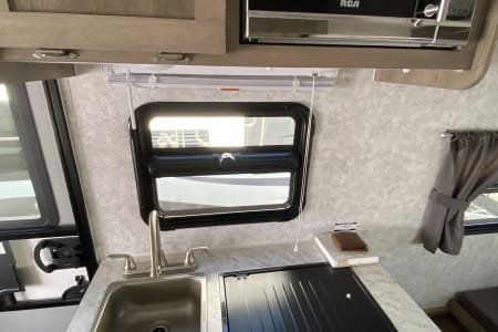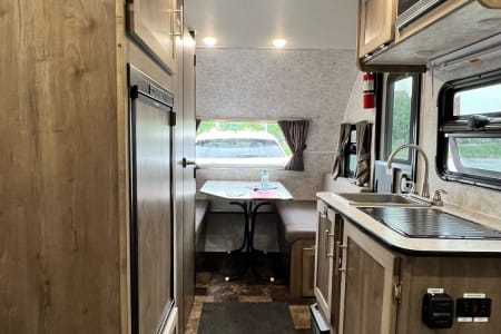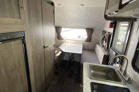 6 gal. hot water tank, shower and toilet. 120v fridge and 130 Watt solar on the roof for boondocking. Please bring your own bedding and dishes. Propane tank is full and please return full as well.