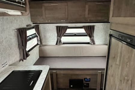 Sleeps a family of 5 using the double bed, bunk bed (up to 125 pounds) and the dinette converted to double bed.