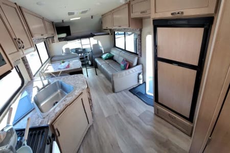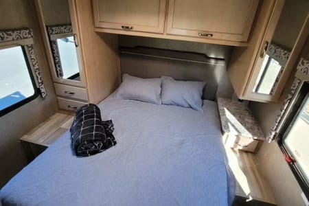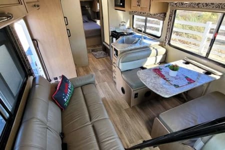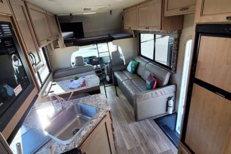 The Adventure Wagon is ready to go whenever you are! A 2020 Thor Four winds that sleeps 7 comfortably (or 8 if you like to be a little cozy) with a walk around queen bed, over the cab bunk, dinette bed conversion and a couch that can convert into a bed. Equipped with a radio and entertainment system throughout with multiple connection applications (Bluetooth, HDMI, USB, and Aux cable). Two televisions with DVD, and Roku capabilities for when you wind down in the evenings.