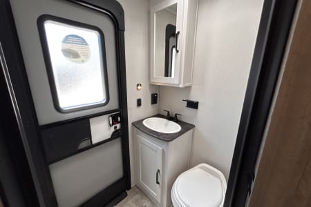 • The half bath has access from inside the trailer AND outside the trailer, so no waiting in line of the bathroom!