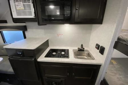 I have a lightweight and family-friendly 2021 Braxton Creek Bushwacker 17BH travel trailer, that is fully stocked and ready for your summer adventures and road trips. Braxton only weighs 2,360 lbs. making it easy to tow by all midsize SUVs and trucks through Colorado’s Rocky Mountains – Braxton pulls beautifully with my 2018 Toyota 4Runner.