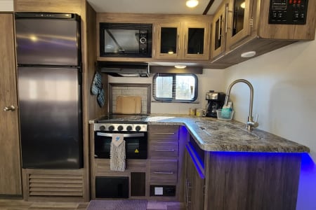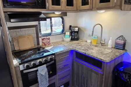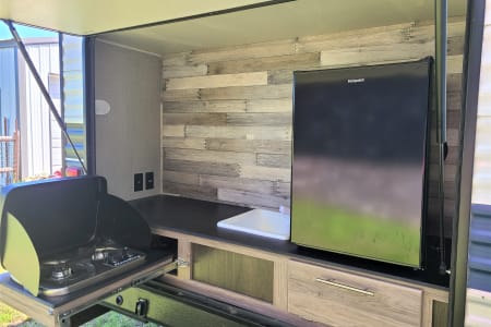 But we don't stop there. Annie also comes with an outdoor kitchen (because let's face it, you aren't spending vacation with her to sit inside all weekend)! We include an ice maker as well.