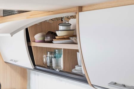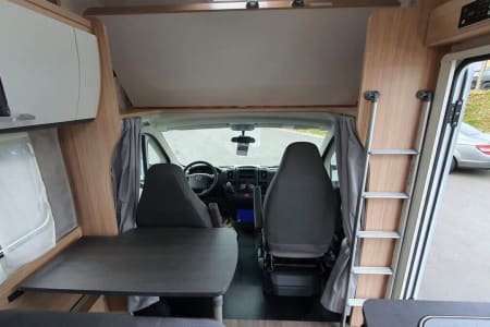 The Sunlight A60 is α generously designed and all-embracing coachbuilt motorhome with space for up to 4 people. The well-designed interior ensures maximum comfort. In addition, it offers a very spacious kitchen and a living area that creates a lot of freedom for pleasant living atmosphere. A restful and relaxed sleep is guaranteed by the two double beds. The spacious bathroom offers a washbasin and toilet, the shower is located opposite in a separate area. The motorhome also scores with a parking heater, a huge water tank and a large gas supply. Last but not least, the cockpit is equipped with the latest technology and the most important safety features.