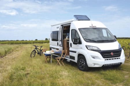 : Rubi has two comfy bench seats and a removable swivel table for enjoying meals with a view. Once assembled, Rubi has a king-size bed (1.67 m x 2.03 m) with additional mattress topper and heel; what a luxury! With the integrated blinds and flyscreens in the installed windows and the fabric blinds for the sliding and rear doors, as well as the roof fan for ventilation, you can be sure of a great nightsleep! Note: we list bedding and towels as Extras at the booking stage in case guests prefer to bring their own. There are storage areas overhead and under the bed. And you can also enjoy books and games and create a beautiful ambience with the remote.