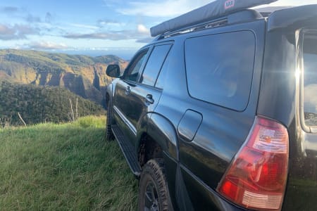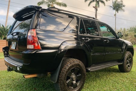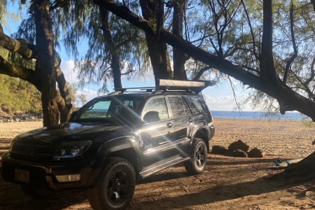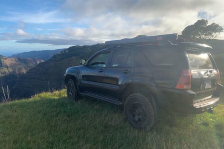 Beautifully kept, excellent condition, Toyota 4runner 4x4 Over-I-Land Camper Rental. The 4runner is lifted and has after-market suspension and tires. This rig allows you to explore and bring a deluxe one bedroom with you. Great bluetooth stereo, lots of space and runs like a dream. Camping gear included.