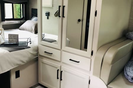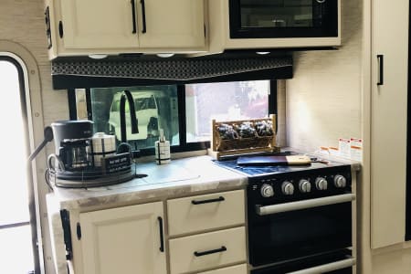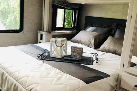 Glamping at its Finest!!! Includes Fridge, Freezer, Gas Stove, bathroom with shower & toilet. The camper has One Slide out that doubles in size when open. Electronic Jacks & Awning. Includes electric skillet, coffee maker, towels, Queen bedding, pillows, cookware, plates, bowls, silverware, & utensils. Includes all your hook ups for water, sewer, & electric.