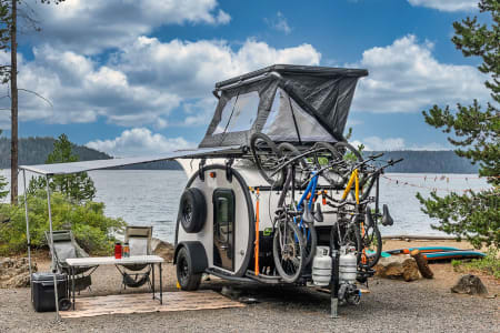 Teardrop Trailers make adventure travel easy—explore Oregon’s Mountains, Rivers, Lakes, Coast & the Willamette Valley. Our BIKE RACK lets you bring your MOUNTAIN BIKES to ride the trails, or paddle the waterways on our STAND UP PADDLE BOARDS.