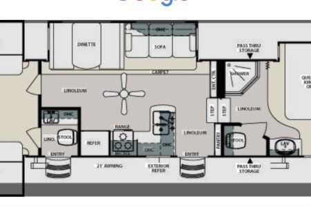Outdoor Convenience: Includes a small drinks fridge, outside shower and a 20 ft. awning for shaded outdoor enjoyment.