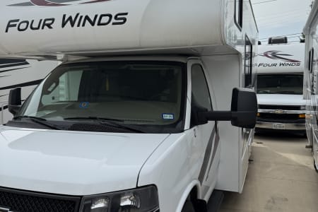 "The Rio Grande" is a 2022 Thor motor coach with low miles. This RV is equipped with everything you and your family need to have a great vacation! For sleeping, there is a master queen size bed, a queen size overhead bed, and a full size dinette conversion bed. It contains a fridge and freezer that run on both electric and gas, a microwave, an oven, and a stove. For entertainment, there is a 40 inch TV on the inside and 32 inch TV on the outside of the RV. It has a generator, a propane tank, and a good amount of storage space. There are side and back up cameras for easy driving. "The Rio Grande" is a great way to have fun and explore everything Texas has to offer.