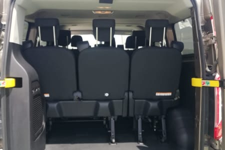 Furgoneta de 9 plazas con cambio automático, control de velocidad de crucero, cámara marcha atrás y bola de remolque.