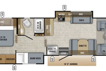 The RV is fully stocked. Additional items included are linens, pillows, towels, cleaning items, coffee nook with French press, dishes, cookware, 6 chairs, folding table, charcoal grill and grilling utensils, outdoor carpet, football, frisbee, cornhole boards, and much more. Just bring your comfort items, we will take care of the rest.