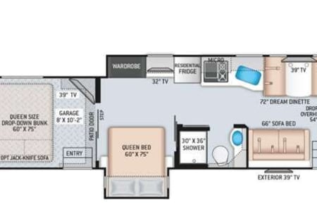 There is plenty of storage which allows you to haul bicycles, ATVs, kayaks and many more outdoor accessories. The exterior 39' LED TV is the perfect addition to make sure you don't miss any big games.