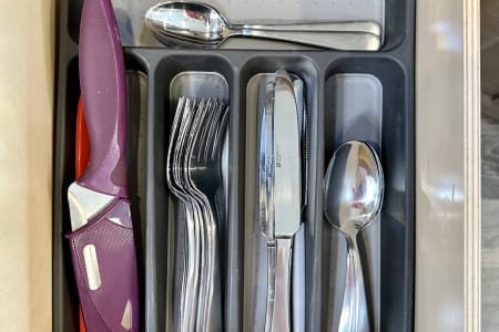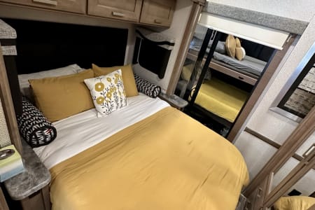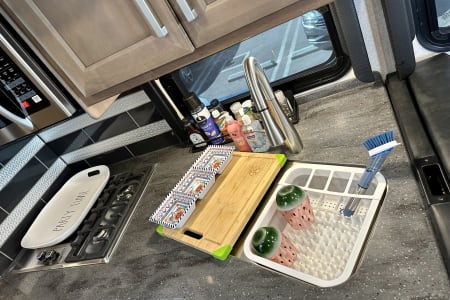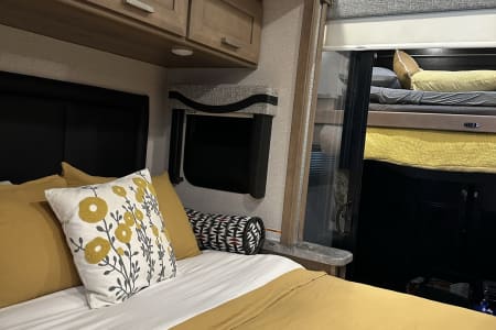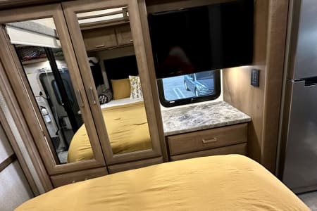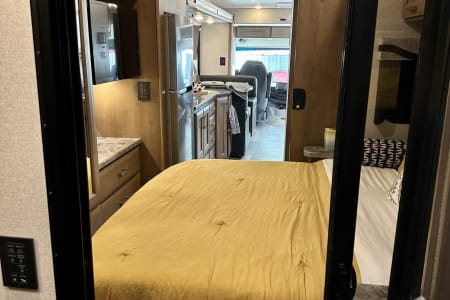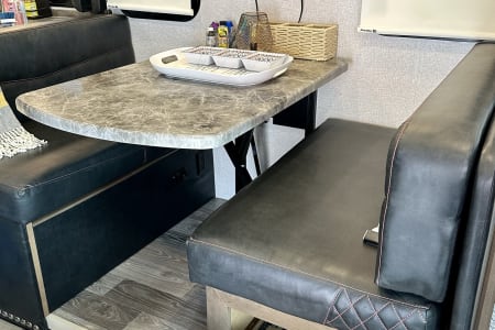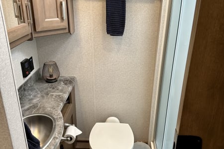 This motorhome offers you the perfect modern stay and with a little bit of outdoor shine coming from the bathroom skylight.