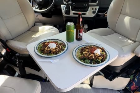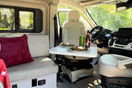 This 21 foot, Ram 3500 Tellaro is equipped with solar panels and a generator. (The van is set up to operate off grid but we do not recommend this, as it's best to plug it in overnight to prevent the batteries from dying.)