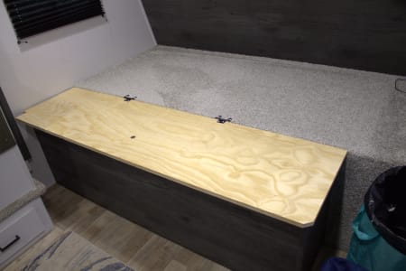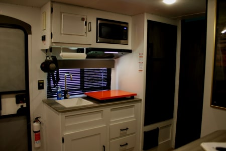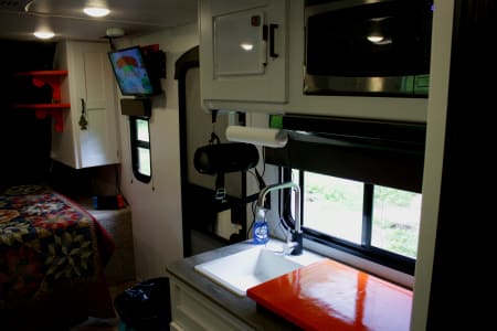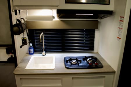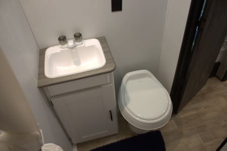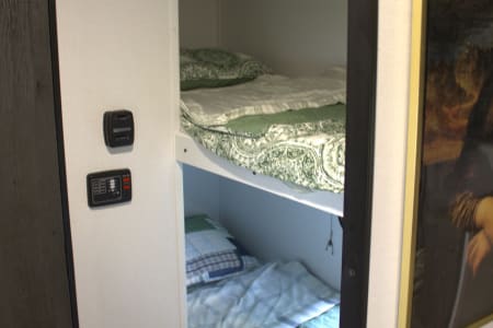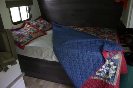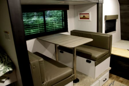 Ready to hit the road? So is the Keystone Hideout 176BH. Sleeps 5 comfortably - Queen size bed, bunk beds (250lb max.), and dinette bed. You'll have solar power to recharge the battery, propane tank (water heater & burners) bathroom with sink and shower, fridge/freezer (electric if plugged in and propane if needed), 2 stove burner, kitchen sink, Roku TV with easy console hook-up (no cords needed), LEDs inside, 1 slide out to give you extra room inside and an awning with lights. Plenty of storage - 20"x12" outside front access, lockable trunk under queen bed, with long gun mount and closet with hangers.